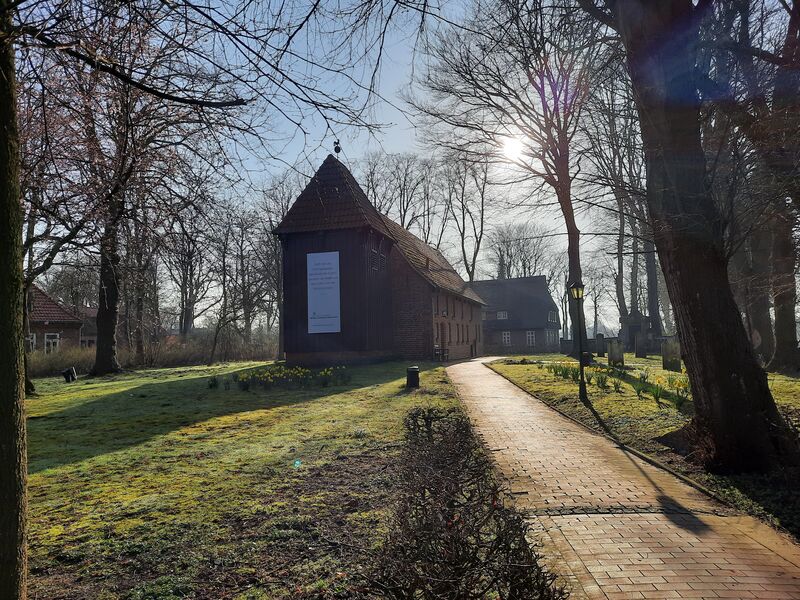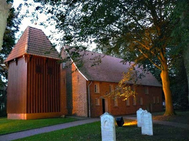 Der unscheinbare Backsteinbau von 1346 wirkt eher wie ein Wohnhaus mit seiner niedrigen Fassade und den rechteckig, zweigeschossig angeordneten Fenstern. Und auch der kleine Holzturm, der die Kirche nur wenig überragt, verändert dieses Bild kaum.